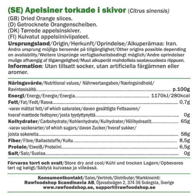 Vores tørrede appelsiner er rene skiver af solmodne appelsiner – uden tilsat sukker, farvestoffer eller konserveringsmidler. Hver frugt høstes på det perfekte modningstidspunkt, skæres nænsomt og tørres langsomt for at bevare den naturlige karakter og den lette bitterhed, der gør appelsinen så særlig. I tørret appelsin mødes sødme og frisk syre – ideel til bagning, dekoration og drikke. Der kræves flere kilo frisk frugt for at fremstille én pose af disse gyldne skiver – resultatet er en intens smagsoplevelse, der løfter enhver anledning.