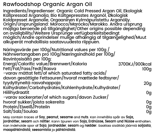 Vores økologiske arganolie er ikke kun fantastisk til hår og hud, men den kan også bruges i madlavning som en delikat vegetabilsk olie. Holdbarheden på dette produkt er lang, og det bevarer sin kvalitet over tid, hvis det opbevares køligt og mørkt. Med sin alsidighed og naturlige oprindelse er arganolien en uundværlig del af din daglige skønhedspleje.
