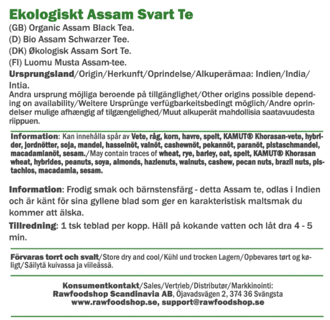 Denne økologiske Assam-te passer lige så godt til et øjebliks afslapning som til en energigivende start på dagen. Mange vælger at nyde den, præcis som den er, men hvis du hører til dem, der gerne vil have en sjat plantebaseret mælk i koppen, så gør Assam-te sig også rigtig godt på den måde. Hvordan brygger du en kop sort te? Brug en teskefuld teblade pr. kop, hæld kogende vand over, og lad trække i 4–5 minutter for den bedste smag. Assam-te er også en fremragende te, hvis du kan lide at lave dine egne teblandinger – hvorfor ikke prøve den i kombination med krydderier for at skabe din egen chai-blanding? Så hvad venter du på – gør plads i dit køkkenskab til en pose Assam Te ØKO og lad din tekop blive noget helt særligt.