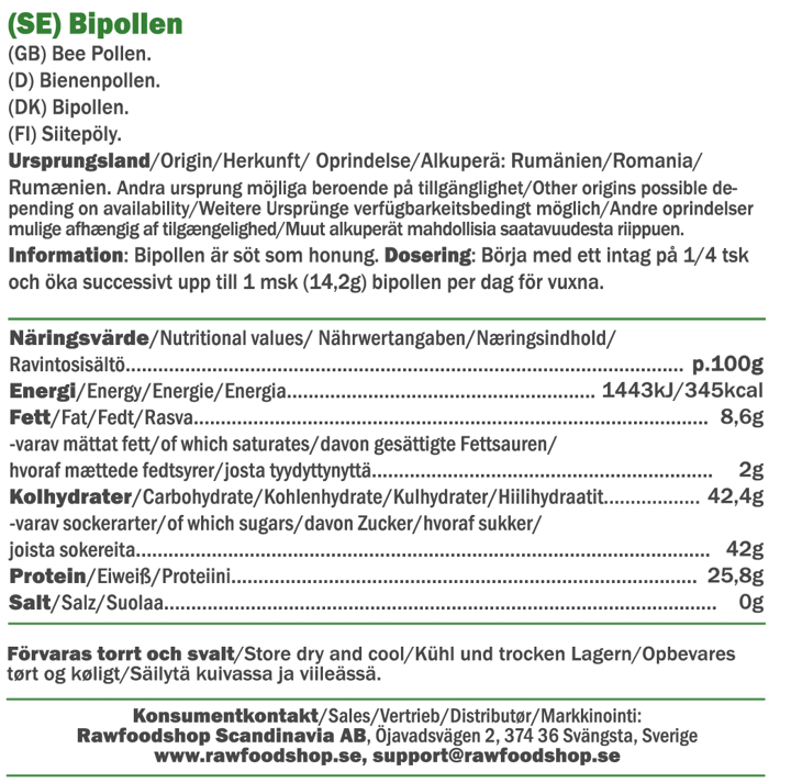Bipollen er en naturlig råvare, der kombinerer farve, tekstur og smag på en fantastisk måde. Pollenkornene, som består af små klumper fra forskellige planter, samles af flittige bier og giver en subtil sødme. Disse gyldne små korn bruges ofte som en naturlig topping og dekoration på bagværk, men de kan også blandes i yoghurt, müsli, granola eller smoothies for at tilføre en ekstra dimension af naturlighed. Hvis du foretrækker en mildere smag, kan bipollen opløses i vand eller te – eller hvorfor ikke blande dem med en skefuld honning?