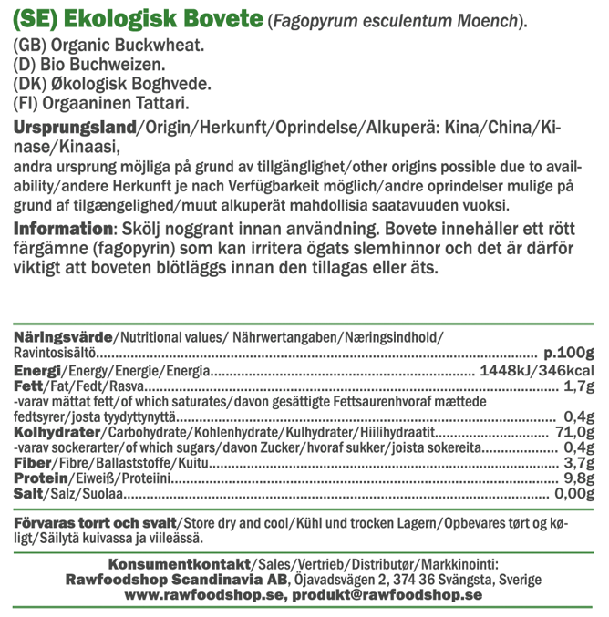 Boghvede er det perfekte valg for dig, der ønsker at variere din kost med en naturligt smagfuld ingrediens. På trods af sit navn er boghvede ikke en kornsort, men en urt, der i mange år har været anvendt i køkkener verden over. Med sin milde, nøddeagtige smag passer den lige godt i en varm grød som i en sprød salat eller et friskbagt brød. Den kan også males til mel og bruges i pandekager. Boghvede er let at tilberede – du kan koge den som ris eller riste den for en mere fyldig smag. Det er en oplagt ingrediens i både traditionelle og moderne opskrifter, og mulighederne er uendelige!