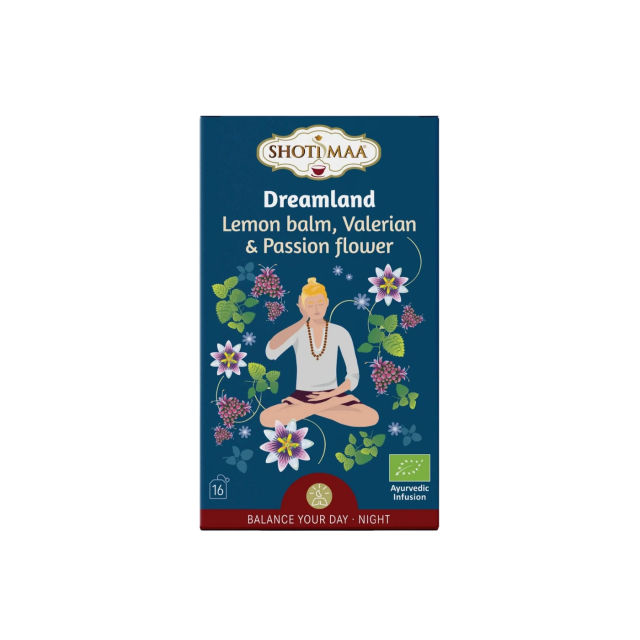 Citronmelisse, Baldrianrod & Passionsblomst Urtete ØKO fra Shoti Maa er en økologisk te, der forener traditionel ayurvedisk viden med en unik smagsoplevelse. Med nøje udvalgte urter og krydderier skaber denne teblanding, også kendt som "Shoti Maa Dreamland", en harmonisk kop, der indbyder til ro og afslapning i hverdagen. Shoti Maa, en familieejet virksomhed siden 2008, står for høj kvalitet og omtanke i hver eneste kop.