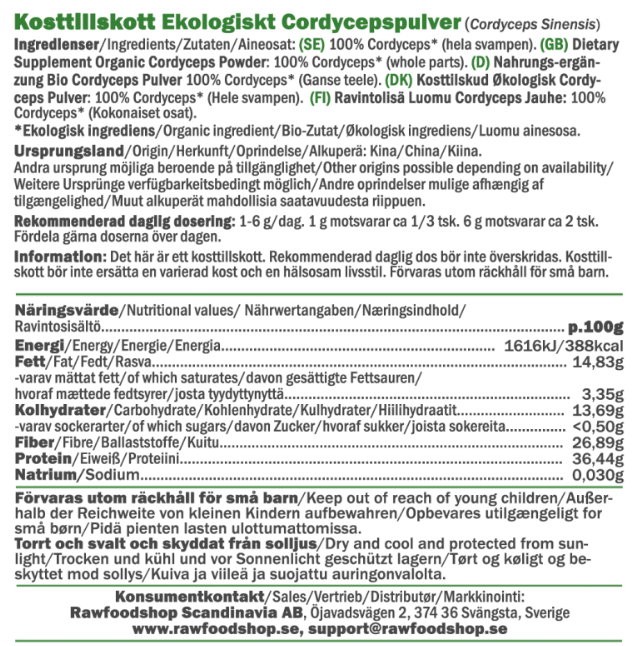 Dette finmalede cordyceps-pulver kan nemt blandes i varmt vand til en smagfuld drik eller tilsættes i smoothies og andre opskrifter. Da det er 100 % plantebaseret og fri for tilsætningsstoffer, er det et ideelt vegansk kosttilskud. Vores økologiske cordyceps-pulver er en nem og naturlig måde at nyde denne svamp på.