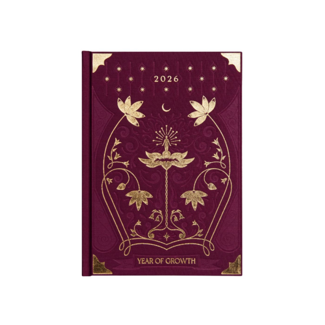 En unik og smukt designet dagbog for året 2026 – skabt til at støtte din personlige udvikling året igennem. Bogen kombinerer daglig refleksion med temaer som astrologi, bevidsthed og intentioner, og opmuntrer dig til at skrive, drømme og vokse med årets gang. Den vinrøde farve giver et elegant udtryk, og indholdet fungerer som en personlig tidskapsel, du vil ønske at gemme.