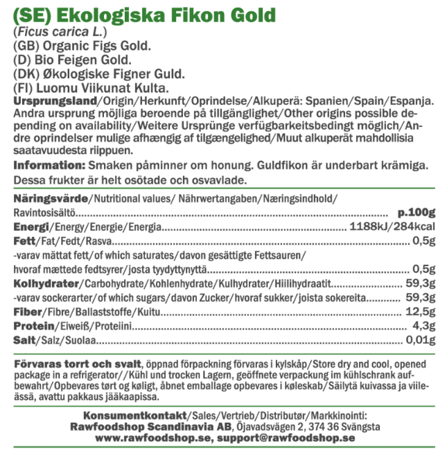 Når du vælger vores tørrede guldfigner, får du ikke kun en smagsrig oplevelse, men også et produkt, der lever op til høje krav til kvalitet og bæredygtighed. Disse figner er økologiske ifølge EU's standard, hvilket betyder, at de er dyrket uden syntetiske pesticider eller kunstgødning. De er også veganske og råtørrede, eller rawfood, hvilket sikrer, at de bevarer deres naturlige karakter. Med tørrede guldfigner kan du være sikker på, at du får en god råvare fra naturens spisekammer, der passer perfekt i en bæredygtig hverdag.