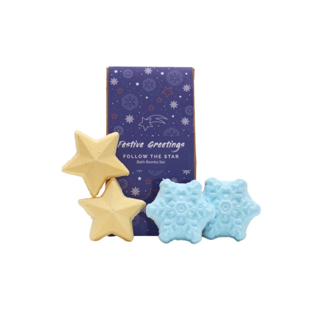 Læg en badebombe i et fyldt badekar og lad den opløses. Produktet er beregnet til at bruges som en del af en afslappende badrutine i juletiden.