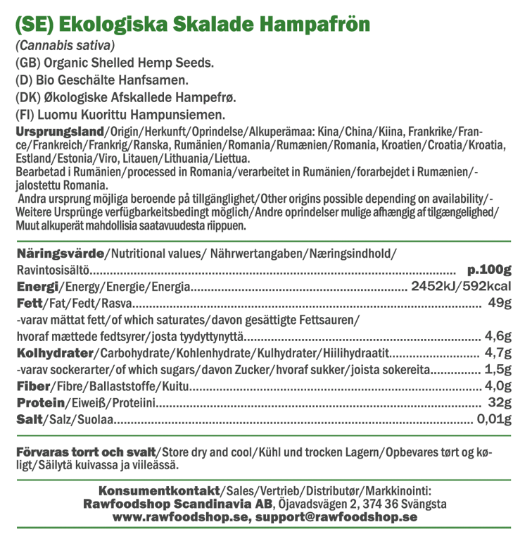 Økologiske afskallede hampefrø er bløde og har en mild nøddeagtig smag, der gør dem perfekte til brug i mange forskellige retter. Du kan nemt drysse dem over salater, blande dem i smoothies eller bruge dem som ingrediens i desserter og bagværk. Med deres milde smag passer de godt i alle slags mad og gør hvert måltid lidt mere spændende.