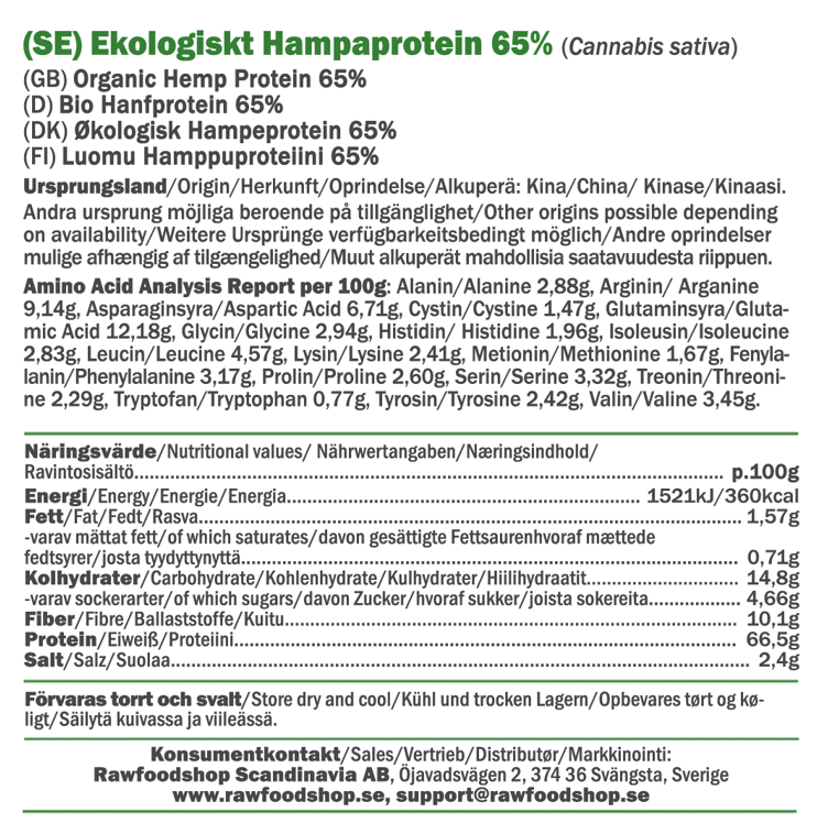 Prøv Hampeprotein 65% ØKO – et proteinpulver af høj kvalitet, fremstillet af nøje udvalgte hampefrø. Med sin milde, nøddeagtige smag er dette veganske proteinpulver en perfekt ingrediens i smoothies, bagværk og madlavning. Uanset om du vil eksperimentere med proteinpulver-opskrifter eller blot ønsker at berige din daglige kost med et naturligt alternativ, er hampeprotein et fremragende valg.