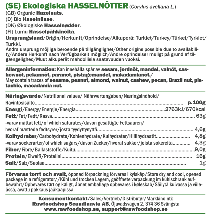 Vores økologiske hasselnødder er af højeste premiumkvalitet og fulde af smag. De er fantastiske at spise som de er eller at bruge i bagning og madlavning. De har en rig og fyldig smag, der løfter alt fra enkle snacks til festlige bagværk. Uanset om du nyder dem som de er, eller vælger at riste hasselnødder for en mere intens og personlig smag, er dette et produkt, der hurtigt vil blive en favorit i dit spisekammer.