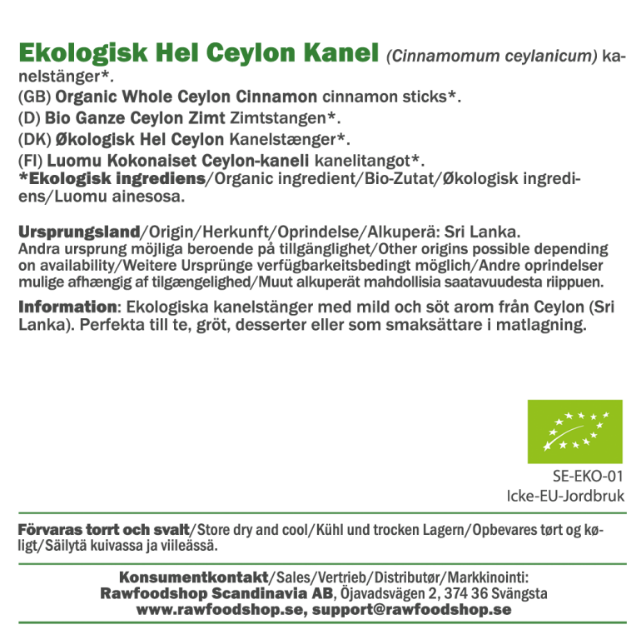 Ægte Ceylonkanel, også kendt som Cinnamomum Zeylanicum, stammer fra Sri Lanka og har en mild og aromatisk smag, der adskiller sig fra andre kaneltyper. Vores økologiske Ceylon-kanelstænger er af højeste kvalitet og giver en varm og balanceret smag til både varme drikke, gryderetter og bagværk. Kanelstænger er perfekte til gradvist at frigive deres aroma og skabe en behagelig duft i din madlavning.