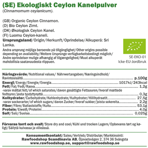 Ægte kanel, også kendt som Ceylonkanel eller Cinnamomum Verum, har en lysere farve og mildere smag end almindelig kassiakanel og er perfekt til alt fra bagværk til varme drikke og madlavning. Kanel er et ideelt krydderi, når du vil have en varm, rund smag i dine retter. Økologisk Ceylon-kanelpulver, også kendt som ægte kanel, har en mild og naturligt sød tone, der gør sig godt i alt fra morgenmadsskåle og smoothies til gryderetter og marinader. Drys gerne lidt kanel over morgengrøden, yoghurten eller en kop chai for en opløftende start på dagen. Brug også kanel i krydderiblandinger eller som smagsgiver i varme drikke som kaffe, te eller gurkemejemælk.