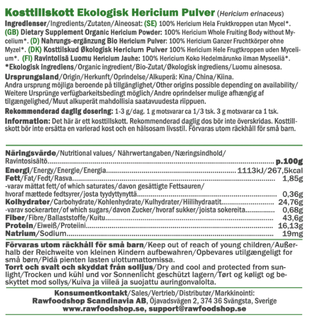 Hericium Pulver/Lion’s Mane ØKO er et økologisk, vegansk kosttilskud, der er nemt at anvende i hverdagen. Lion’s Mane, også kendt som pindsvinepigsvamp, trives på døende løvtræer såsom asp, birk og bøg. Dens unikke, korallignende form og luftige struktur har givet den kælenavnet "løvemanke". Vores økologiske Lion’s Mane-pulver er nænsomt fremstillet for at bevare svampens naturlige egenskaber, helt uden tilsætningsstoffer.