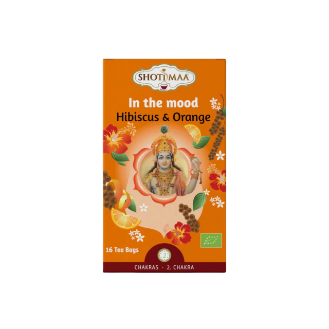 Hibiscus & Appelsin Urtete ØKO fra Shoti Maa er en økologisk teblanding, der forener hibiscus’ friske karakter med en frugtig note af appelsin. Inspireret af ayurvedisk tradition er der skabt en harmonisk kombination af urter og krydderier, som indbyder til et øjeblik af ro og velvære. “Shoti Maa In the mood” afspejler virksomhedens mangeårige erfaring med at sammensætte naturlige ingredienser i unikke og omhyggeligt udviklede teblandinger.