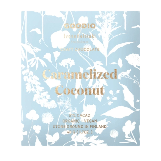 Økologisk chokolade med fyldig kakaokarakter og sød, karamelliseret kokos, som giver en cremet og sprød smagsoplevelse. Fremstillet med nøje udvalgte ingredienser for en balanceret kombination af sødme og tekstur. Håndlavet i Finland med fokus på kvalitet og ægte håndværk.