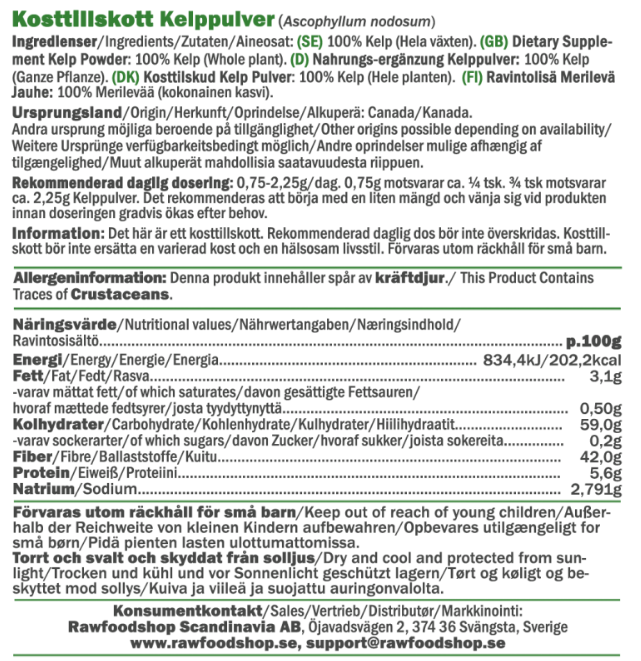 Kelp er en brun tangtype, der i århundreder har været brugt i madlavning verden over – især i det asiatiske køkken. Med dette kelp-pulver får du en nem og alsidig ingrediens, der gør det let at tilføre dybde og smag til dine daglige retter. Pulveret har en naturlig salt og aromatisk smag med tydelige havnoter og er perfekt som smagsgiver i alt fra salater og supper til varme gryderetter og marinader. Drys det over maden lige før servering, eller bland det direkte i retten under tilberedningen for at give din mad en ekstra dimension. Kelp er en havplante, der vokser i kolde, mineralrige farvande – og det er netop dens oprindelse, der gør den til en populær og bæredygtig ingrediens i det plantebaserede køkken.