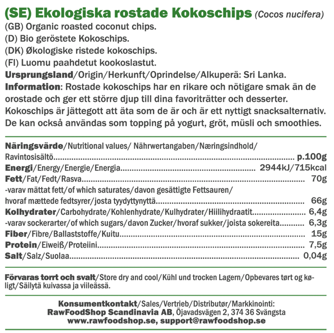 Er du en kokoselsker? Så vil vores økologiske ristede kokoschips garanteret blive din nye favorit. De har en dybere og mere intens smag end uristede kokoschips, med en herlig nøddeagtig tone og ekstra meget crunch. Ristningen fremhæver kokossmagen og giver et let karamelliseret touch, hvilket gør dem til et perfekt supplement i både madlavning og bagning. Certificerede i henhold til EU Organic-standard, er vores kokoschips ikke kun lækre, men også bæredygtigt producerede.