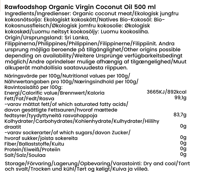 Vores økologiske kokosolie er certificeret i henhold til EU Organic-standarden. Dette betyder, at olien er produceret uden syntetiske pesticider eller kunstgødning, og at du får et produkt af højeste kvalitet, der er fremstillet med omtanke for både naturen og forbrugeren. Uanset om du bruger denne kokosolie i madlavning, hudpleje eller hårpleje, kan du være sikker på, at du træffer et bæredygtigt valg.