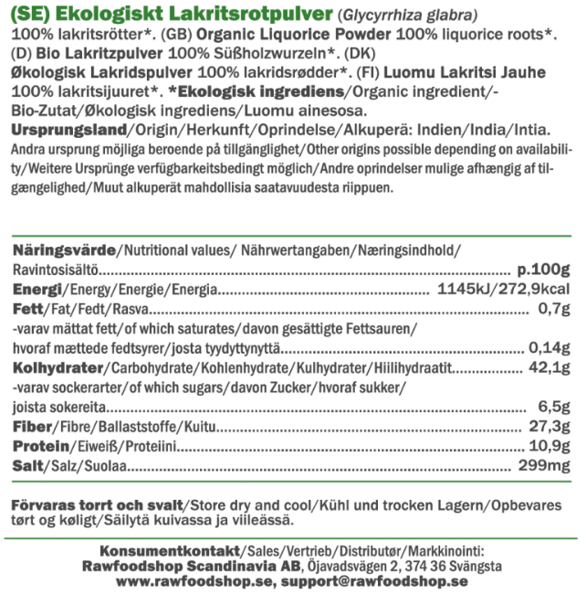 Når du vælger vores Lakridsrodspulver ØKO, får du ikke kun et produkt af højeste kvalitet, men også sikkerheden i, at det er 100% økologisk. Det betyder, at lakridsroden er dyrket uden kunstige sprøjtemidler eller tilsætningsstoffer, hvilket gør det til et bevidst valg for dig, der prioriterer rene råvarer. Pakken på 125 g er perfekt til både den flittige hjemmebager og madelskeren, der ønsker at eksperimentere med nye opskrifter. Giv dine retter ekstra karakter – lad lakridsrodspulveret blive din nye favorit i køkkenet!