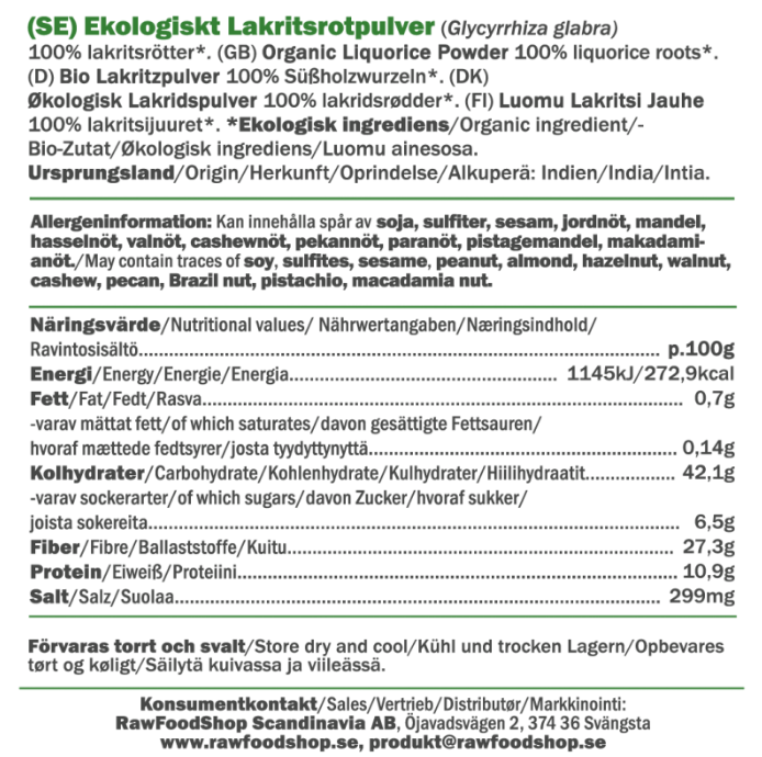 Når du vælger vores Lakridsrodspulver ØKO, får du ikke kun et produkt af højeste kvalitet, men også sikkerheden i, at det er 100% økologisk. Det betyder, at lakridsroden er dyrket uden kunstige sprøjtemidler eller tilsætningsstoffer, hvilket gør det til et bevidst valg for dig, der prioriterer rene råvarer. Pakken på 250 g er perfekt til både den flittige hjemmebager og madelskeren, der ønsker at eksperimentere med nye opskrifter. Giv dine retter ekstra karakter – lad lakridsrodspulveret blive din nye favorit i køkkenet!