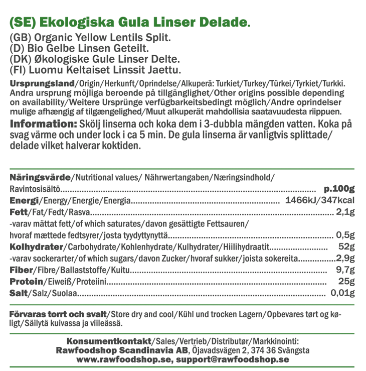 Med deres milde, nøddeagtige smag og cremede konsistens er gule linser en oplagt ingrediens i alt fra hverdagsretter til festlige veganske middage. Vores økologiske, delte gule linser er nøje udvalgte og nemme at tilberede – de kræver ingen iblødsætning og er klar på få minutter. Perfekte til dig, der vil lave noget lækkert, sundt og bæredygtigt uden at bruge timer i køkkenet. Gule linser åbner døren til en verden af smagsoplevelser. Prøv en cremet linsesuppe med kokosmælk og karry, en krydret linsesalat med ovnbagte grøntsager og citron, eller fyld dem i et pitabrød med masser af smag. Mulighederne er uendelige – og det er netop derfor, gule linser bør være en fast bestanddel i ethvert køkken.