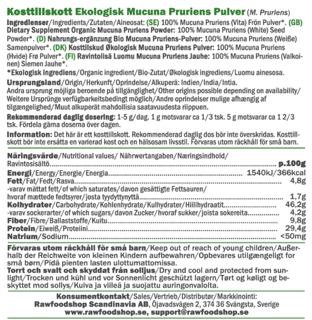 Mucuna Pruriens Pulver ØKO er et økologisk og vegansk kosttilskud, fremstillet af frøene fra Mucuna Pruriens (M. Pruriens). Mucuna Pruriens er en indisk bælgplante, der anvendes inden for ayurveda. Da dette Mucuna Pruriens-pulver er økologisk certificeret, betyder det, at råvaren er dyrket uden pesticider eller syntetiske tilsætningsstoffer.