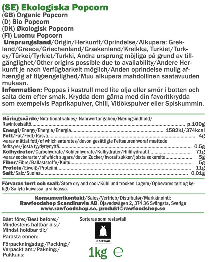Popcorn ØKO er det oplagte valg for dig, der vil nyde virkelig lækre og sprøde popcorn. Disse økologiske majskerner poppes nemt i en gryde med lidt olie eller smør i bunden. På blot et par minutter fyldes køkkenet med den velkendte duft af friskpoppede popcorn – en klassiker, der aldrig går af mode. Disse popcorn er et naturligt og smagfuldt alternativ, der passer til enhver lejlighed – uanset om du ser en film, hygger med venner eller bare har lyst til noget lækkert til fredagshyggen.