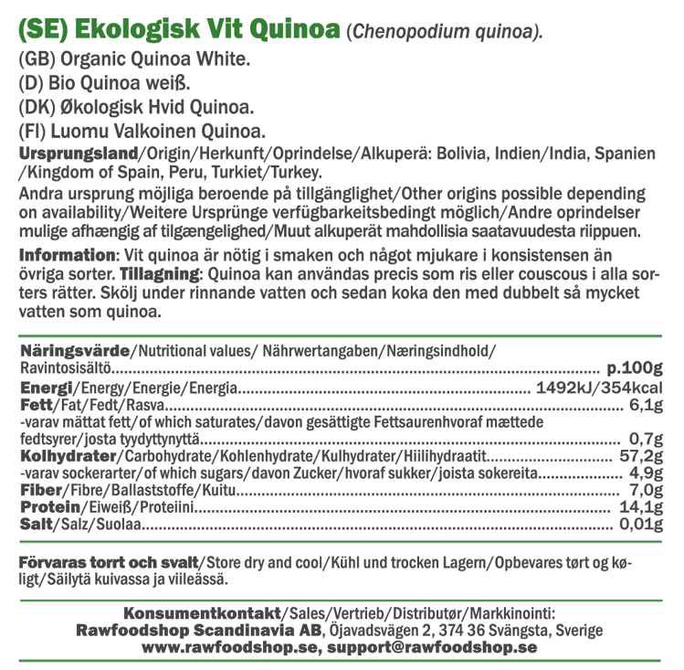 Quinoa Hvid ØKO er det perfekte valg for dig, der ønsker en let og behagelig konsistens med en mild, nøddeagtig smag. Denne økologiske hvide quinoa kan bruges i et væld af retter og fungerer fremragende som et næringsrigt alternativ til ris eller pasta. Oprindeligt fra Sydamerika har quinoa været dyrket i over 7000 år og værdsættes i dag verden over for sin alsidighed i madlavning. Vil du lave en smagfuld salat, en fyldig gryderet eller en cremet quinoa-grød til morgenmad? Så er hvid quinoa et fremragende valg.
