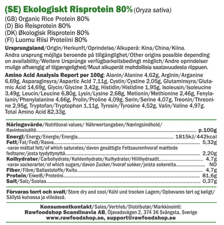 Risproteinpulver ØKO er et højkvalitets proteinpulver fremstillet af økologisk spiret fuldkornsris. Dette veganske proteinpulver er et fremragende alternativ for dig, der søger et plantebaseret indslag i din kost. Med sin milde smag og fine konsistens er det nemt at blande i forskellige retter og drikkevarer. Takket være den neutrale smagsprofil passer Risproteinpulver ØKO perfekt til en lang række opskrifter i køkkenet.