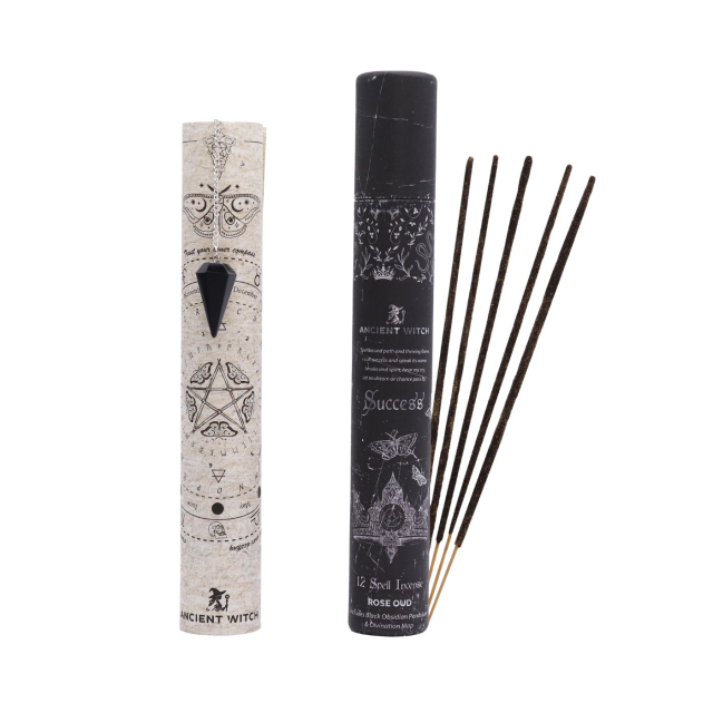 The Success Spell Incense er en kraftfuld ritualoplevelse for dig, der ønsker at manifestere dine mål og tiltrække succes gennem klar intention. Pakken indeholder tolv røgelsespinde med varm, jordnær duft, et obsidianpendul og et spådomskort – alt præsenteret i et dekorativt rør med moderne, magisk design.