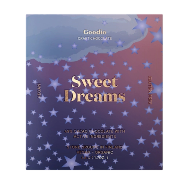 Økologisk chokolade med mindst 49 % kakao og en balanceret, fyldig smagsprofil. Fremstillet med nøje udvalgte ingredienser for en rund og harmonisk smagsoplevelse. Håndlavet i Finland med fokus på kvalitet og ægte håndværk.