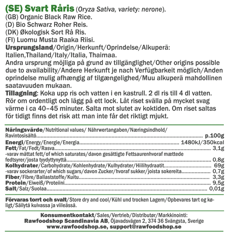 Opdag sort ris – en smagfuld og lækker råvare med en dejlig nøddeagtig og let sød smag. Sort ris, også kendt som forbudt ris eller vildris, har en intens mørk farve, der bliver dyb lilla under tilberedning. Denne økologiske variant er et fremragende alternativ til almindelig ris og fuldkornsris og passer perfekt i alt fra kraftige gryderetter til friske salater. Sort ris har en lidt længere kogetid end hvid ris, men belønner dig med en fantastisk tekstur og dyb smag.