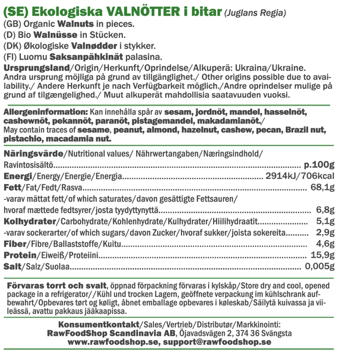 Økologiske valnødder passer perfekt i en rawfood-livsstil, da de bevarer deres naturlige karakter og distinkte smag, når de ikke opvarmes. Til en frisk salat kan du kombinere valnødder i stykker med granatæble og en let citronvinaigrette. Valnøddernes sprøde konsistens fungerer som en perfekt kontrast til de saftige granatæblekerner. Denne kombination skaber en lækker og smuk salat, der kan serveres til både frokost og middag.