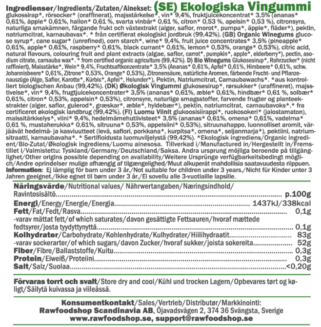 Er du på jagt efter vingummi, der både smager himmelsk og er helt uden gelatine? Vores økologiske vingummier er lækre, faste i konsistensen og fyldt med smag – fremstillet helt uden animalske ingredienser. Med naturlige smagsvarianter af hindbær, æble, citron, appelsin, ananas og solbær giver disse veganske vingummier en farverig smagsoplevelse for både børn og voksne.
